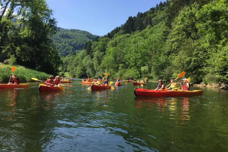 Découverte et descente du Doubs en canoë-kayak. L'aventure en canoë-kayak à travers la merveilleuse réserve naturelle du Doubs est idéale pour les familles ou entre amis. Elle s’adresse également aux débutants.
